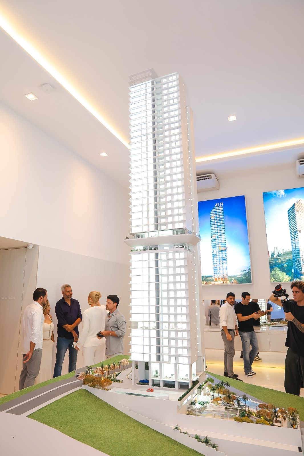 Outro destaque foi a abertura da Casa GHC Altiplano, espaço elegante e minimalista criado para receber clientes e corretores. O showroom surpreendeu os presentes com ambientes sofisticados e uma imponente maquete de quase cinco metros do Artus Blanc, em escala 1:43.
