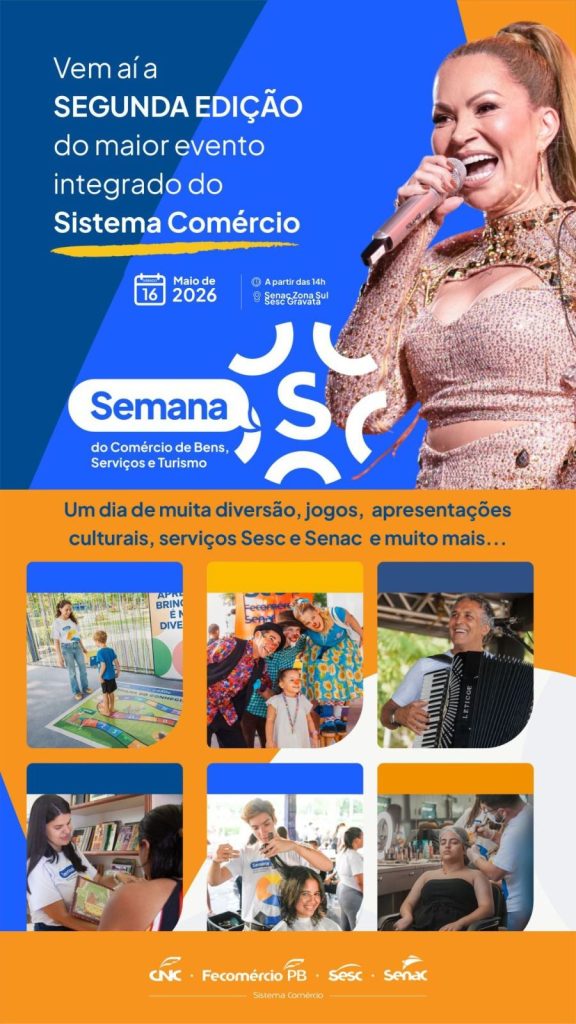 O Sistema Fecomércio/Sesc/Senac promove, no dia 16 de maio, a Semana S do Comércio 2026, consolidada como o maior evento integrado do setor no Brasil.